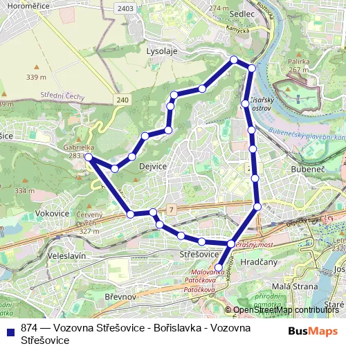 Click here to view the nearest 874 - Vozovna Střešovice - Bořislavka - Vozovna Střešovice bus stop.