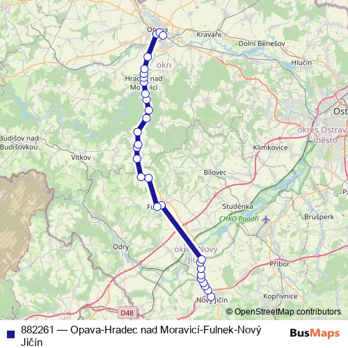 Click here to view the nearest 882261 - Opava-Hradec nad Moravicí-Fulnek-Nový Jičín bus stop.