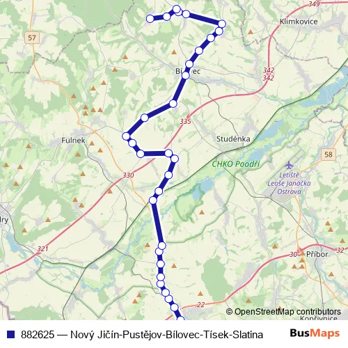 Click here to view the nearest 882625 - Nový Jičín-Pustějov-Bílovec-Tísek-Slatina bus stop.