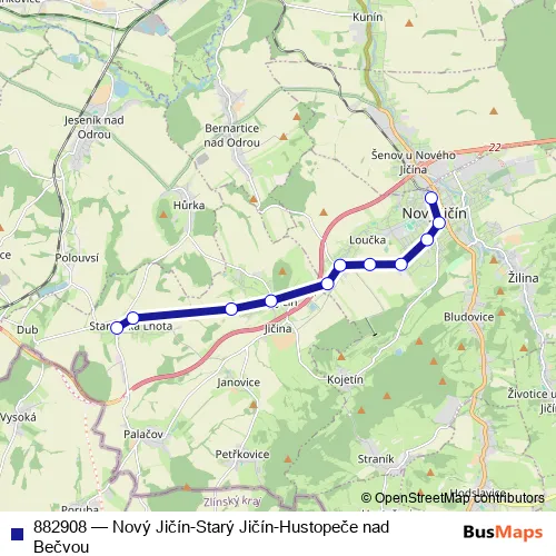 Click here to view the nearest 882908 - Nový Jičín-Starý Jičín-Hustopeče nad Bečvou bus stop.