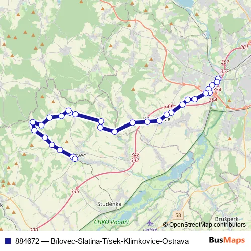 Click here to view the nearest 884672 - Bílovec-Slatina-Tísek-Klimkovice-Ostrava bus stop.