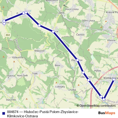 Bus 884674 - Hlubočec-Pustá Polom-Zbyslavice-Klimkovice-Ostrava: Full Schedule in Ostrava
