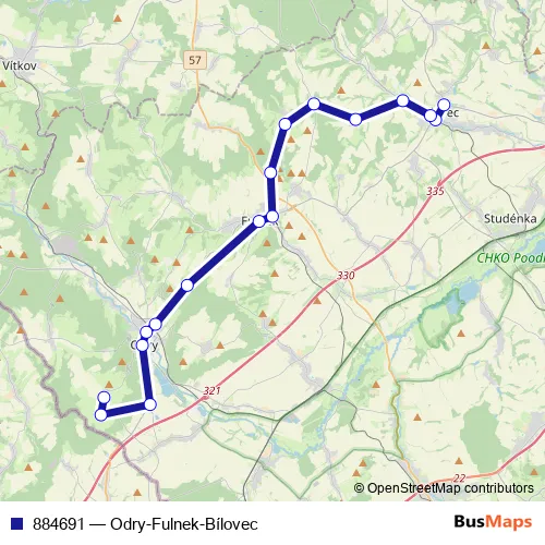 Bus 884691 - Odry-Fulnek-Bílovec in Odry: Stops & Timetable
