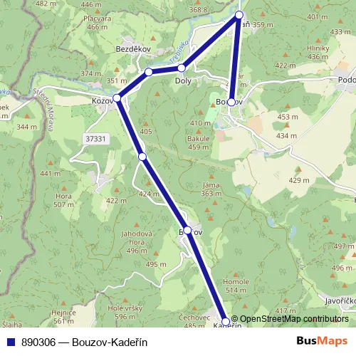 Bus 890306 - Bouzov-Kadeřín: Full Schedule in Bouzov