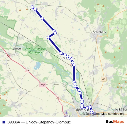 Click here to view the nearest 890364 - Uničov-Štěpánov-Olomouc bus stop.