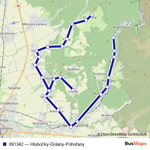 Click here to view the nearest 891342 - Hlubočky-Dolany-Pohořany bus stop.