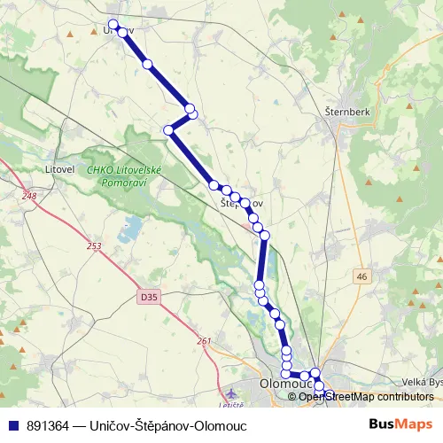 Click here to view the nearest 891364 - Uničov-Štěpánov-Olomouc bus stop.