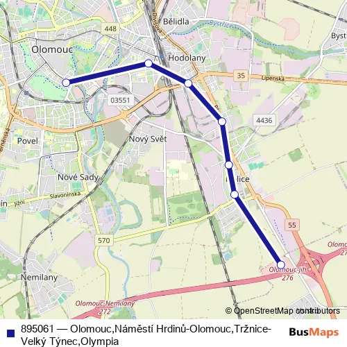 Click here to view the nearest 895061 - Olomouc,Náměstí Hrdinů-Olomouc,Tržnice-Velký Týnec,Olympia bus stop.