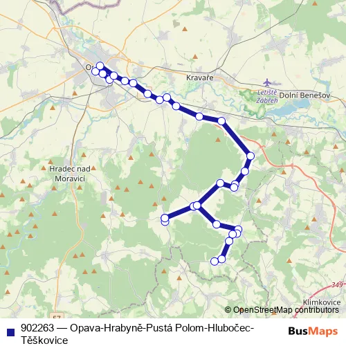 Bus 902263 - Opava-Hrabyně-Pustá Polom-Hlubočec-Těškovice Schedule in Opava