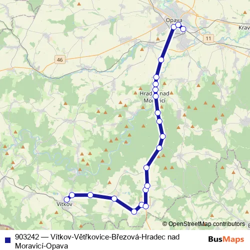 Click here to view the nearest 903242 - Vítkov-Větřkovice-Březová-Hradec nad Moravicí-Opava bus stop.