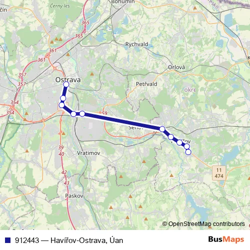 Bus 912443 - Havířov-Ostrava, Úan: Full Schedule in Ostrava