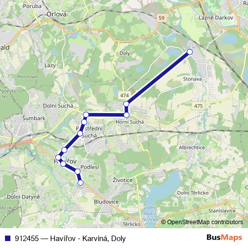 Click here to view the nearest 912455 - Havířov - Karviná, Doly bus stop.