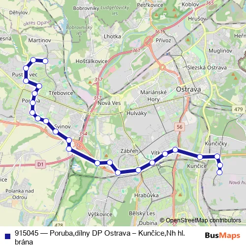 Bus 915045 - Poruba,dílny DP Ostrava – Kunčice,Nh hl.brána: Full Schedule in Ostrava