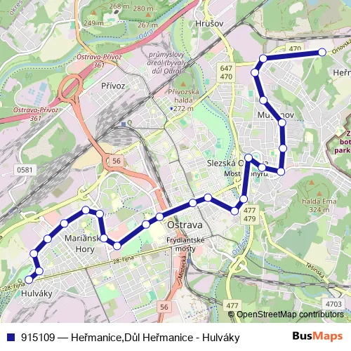 Bus 915109 - Heřmanice,Důl Heřmanice - Hulváky in Ostrava: Stops & Timetable