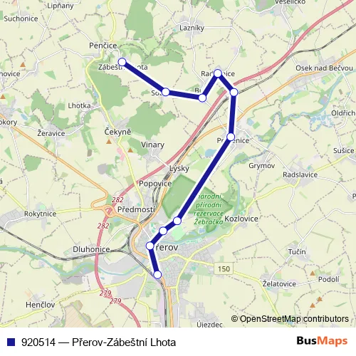 The first stop of the 920514 bus route is Zábeštní Lhota,rest. and the last stop is Přerov,aut.nádr.. 920514 (Přerov-Zábeštní Lhota) is operational during on weekdays.
