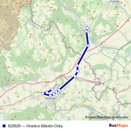 The first stop of the 920929 bus route is Odry,aut.st. and the last stop is Hranice,aut.st.. 920929 (Hranice-Bělotín-Odry) is operational during on weekdays.