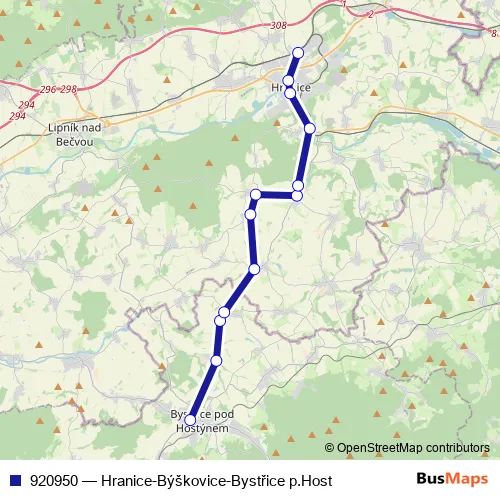 Click here to view the nearest 920950 - Hranice-Býškovice-Bystřice p.Host bus stop.