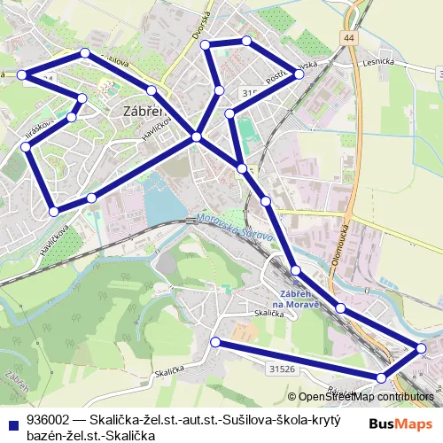 Click here to view the nearest 936002 - Skalička-žel.st.-aut.st.-Sušilova-škola-krytý bazén-žel.st.-Skalička bus stop.