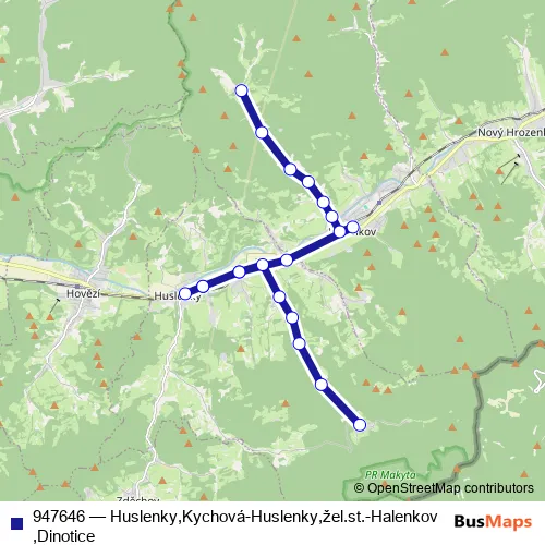 Bus 947646 - Huslenky,Kychová-Huslenky,žel.st.-Halenkov,Dinotice Schedule in Halenkov