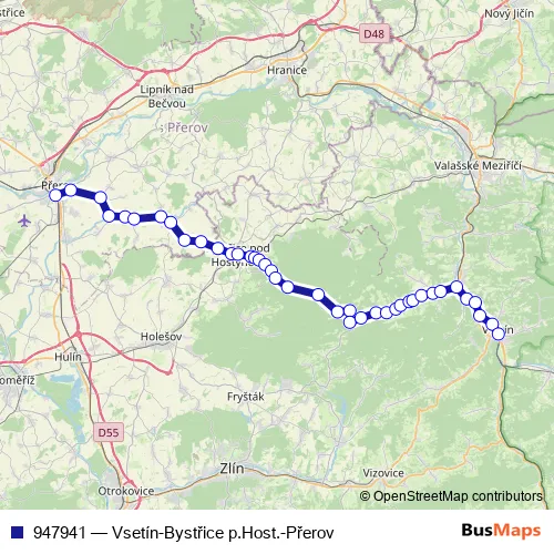 Bus 947941 - Vsetín-Bystřice p.Host.-Přerov in Zlin: Stops & Timetable