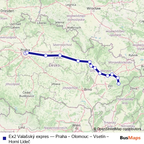 Outbound: Praha hlavní nádraží – Vsetín