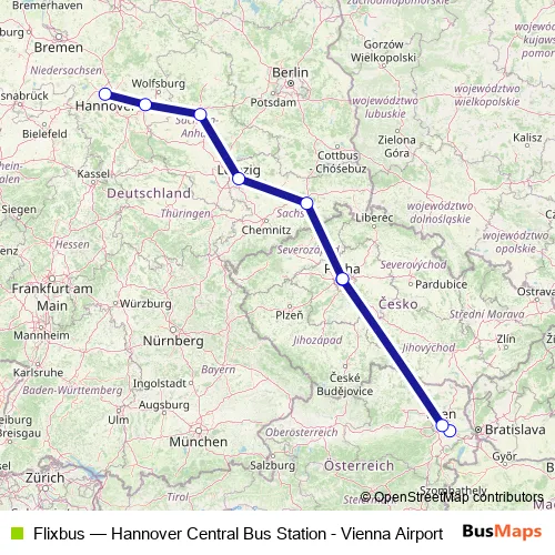 The first stop of the Flixbus bus route is Vienna Airport and the last stop is Hannover Central Bus Station. Flixbus (Hannover Central Bus Station - Vienna Airport) is operational during everyday.