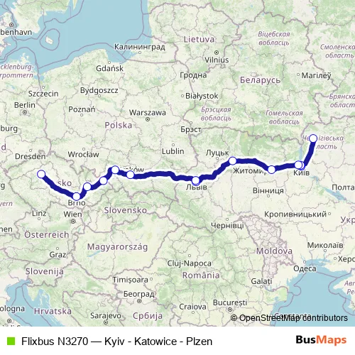 Bus Flixbus N3270 - Kyiv - Katowice - Plzen: Full Schedule in Kyiv