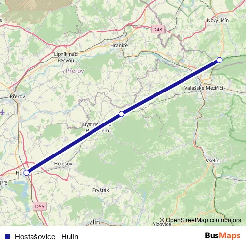 Additional information: Hostašovice - Hulín has 3 stops and the total trip duration