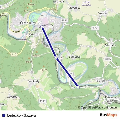 Additional information: Ledečko - Sázava has 3 stops and the total trip duration for this route is approximately 9 minutes.