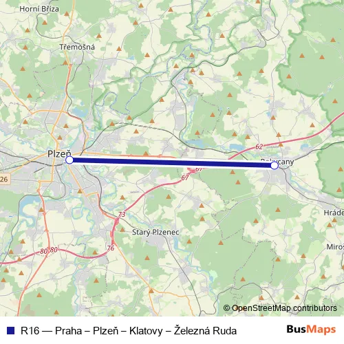 Click here to view the nearest R16 - Praha – Plzeň – Klatovy – Železná Ruda rail stop.