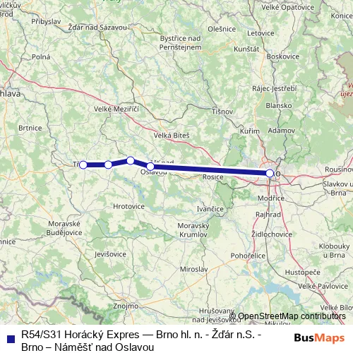Additional information: R54/S31 Horácký Expres has 5 stops and the total trip duration