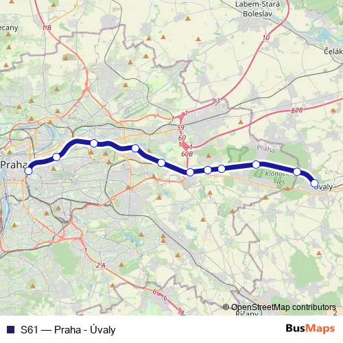 Click here to view the nearest S61 - Praha - Úvaly rail stop.