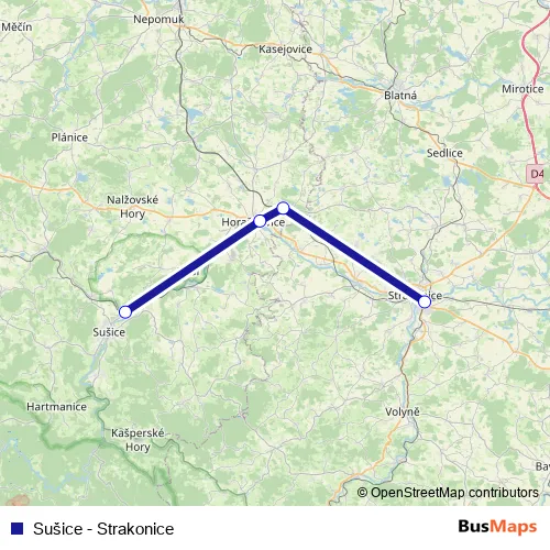 Strakonice. Sušice - Strakonice (Sušice - Strakonice) is operational during everyday.