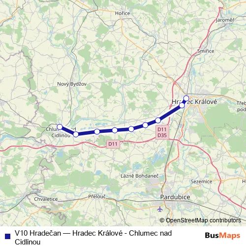 Chlumec nad Cidlinou. V10 Hradečan (Hradec Králové - Chlumec nad Cidlinou) is operational during everyday.