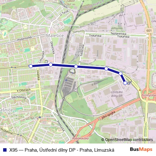 Click here to view the nearest X95 - Praha, Ústřední dílny DP - Praha, Limuzská bus stop.