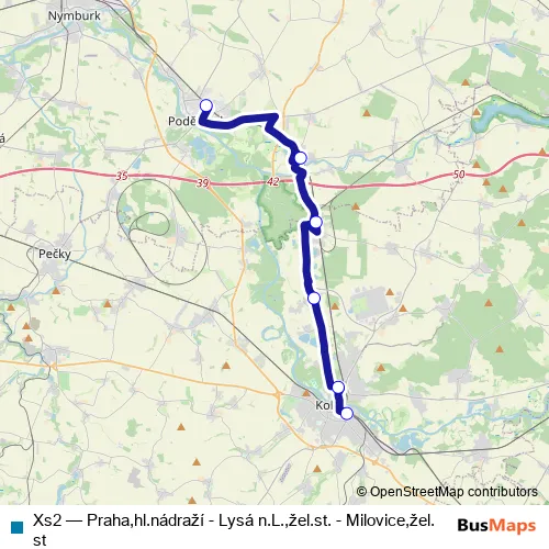 Click here to view the nearest Xs2 - Praha,hl.nádraží - Lysá n.L.,žel.st. - Milovice,žel.st bus stop.