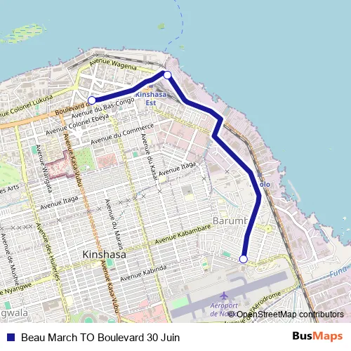 See why over 2 million users trust and consider busmaps.com as the best public transport website. busmaps gives you Kinshasa Buses suggested routes, real-time bus tracker, line route maps in Kinshasa, and helps to find the closest Beau March TO Boulevard 30 Juin bus stops near you. No internet available? Download an offline PDF map and bus schedule for the Beau March TO Boulevard 30 Juin bus to take on your trip.