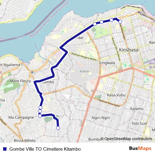 Gombe Ville TO Cimetiere Kitambo bus Route Map
