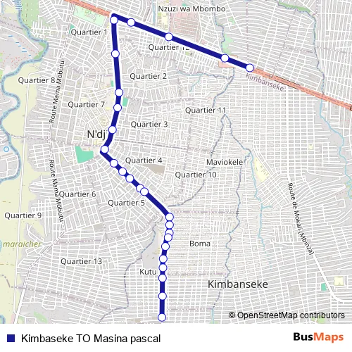 See why over 2 million users trust and consider busmaps.com as the best public transport website. busmaps gives you Kinshasa Buses suggested routes, real-time bus tracker, line route maps in Kinshasa, and helps to find the closest Kimbaseke TO Masina pascal bus stops near you. No internet available? Download an offline PDF map and bus schedule for the Kimbaseke TO Masina pascal bus to take on your trip.