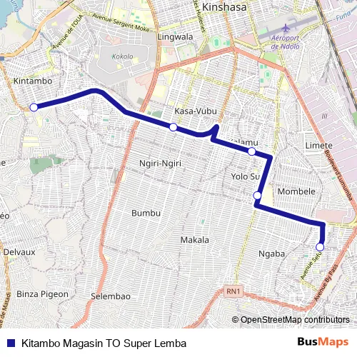 Kitambo Magasin TO Super Lemba bus Route Map