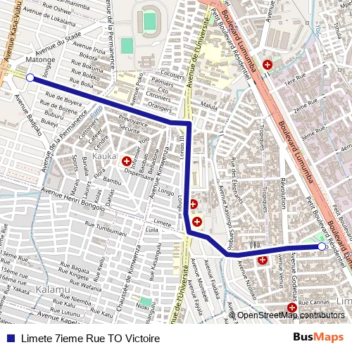 Limete 7ieme Rue TO Victoire bus Route Map