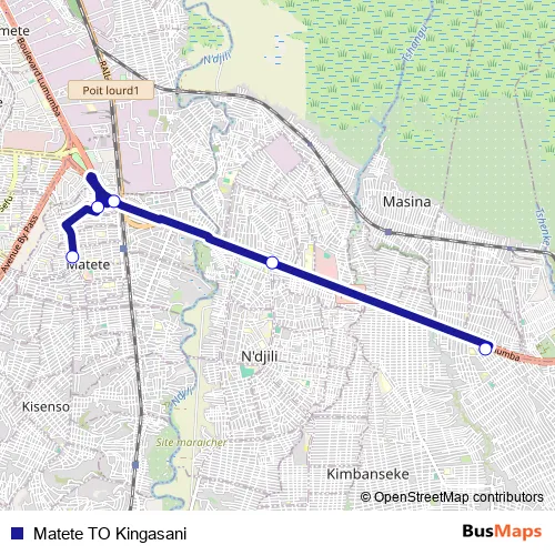 Bus Matete TO Kingasani in Kinshasa: Stops & Timetable