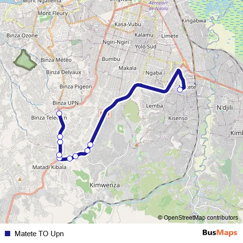 See why over 2 million users trust and consider busmaps.com as the best public transport website. busmaps gives you Kinshasa Buses suggested routes, real-time bus tracker, line route maps in Kinshasa, and helps to find the closest Matete TO Upn bus stops near you. No internet available? Download an offline PDF map and bus schedule for the Matete TO Upn bus to take on your trip.