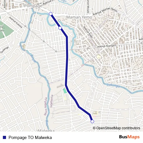 Bus Pompage TO Malweka in Kinshasa: Stops & Timetable