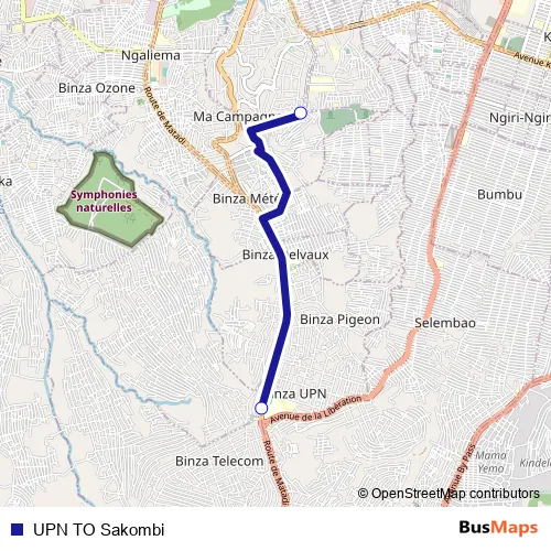 See why over 2 million users trust and consider busmaps.com as the best public transport website. busmaps gives you Kinshasa Buses suggested routes, real-time bus tracker, line route maps in Kinshasa, and helps to find the closest UPN TO Sakombi bus stops near you. No internet available? Download an offline PDF map and bus schedule for the UPN TO Sakombi bus to take on your trip.