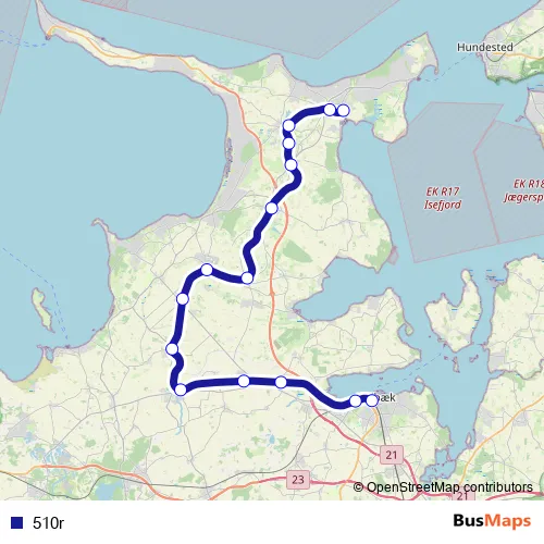 The first stop of the 510r rail route is Nykøbing Sj St. and the last stop is Holbæk St.. 510r is operational during everyday.