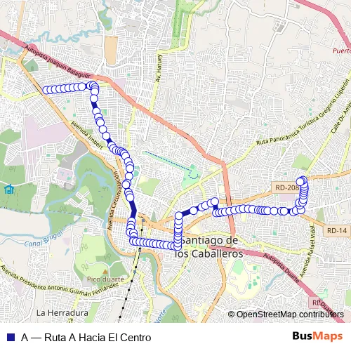 See why over 2 million users trust and consider busmaps.com as the best public transport website. busmaps gives you Santiago de los Caballeros Buses suggested routes, real-time bus tracker, line route maps in Santiago de los Caballeros, and helps to find the closest A bus stops near you. No internet available? Download an offline PDF map and bus schedule for the A bus to take on your trip.