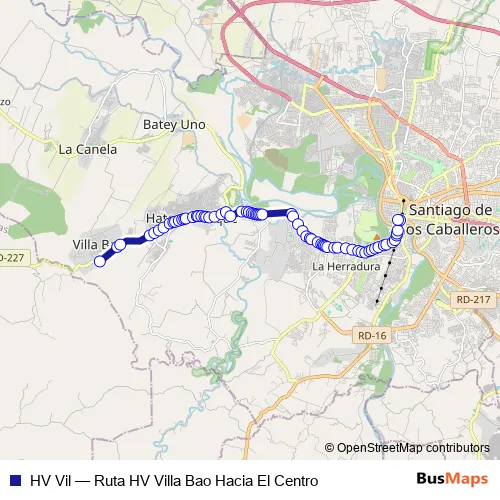 See why over 2 million users trust and consider busmaps.com as the best public transport website. busmaps gives you Santiago de los Caballeros Buses suggested routes, real-time bus tracker, line route maps in Santiago de los Caballeros, and helps to find the closest HV Vil bus stops near you. No internet available? Download an offline PDF map and bus schedule for the HV Vil bus to take on your trip.