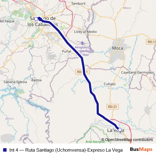 See why over 2 million users trust and consider busmaps.com as the best public transport website. busmaps gives you La Vega Buses suggested routes, real-time bus tracker, line route maps in La Vega, and helps to find the closest Int 4 bus stops near you. No internet available? Download an offline PDF map and bus schedule for the Int 4 bus to take on your trip.