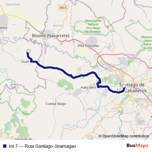 See why over 2 million users trust and consider busmaps.com as the best public transport website. busmaps gives you Santiago de los Caballeros Buses suggested routes, real-time bus tracker, line route maps in Santiago de los Caballeros, and helps to find the closest Int 7 bus stops near you. No internet available? Download an offline PDF map and bus schedule for the Int 7 bus to take on your trip.